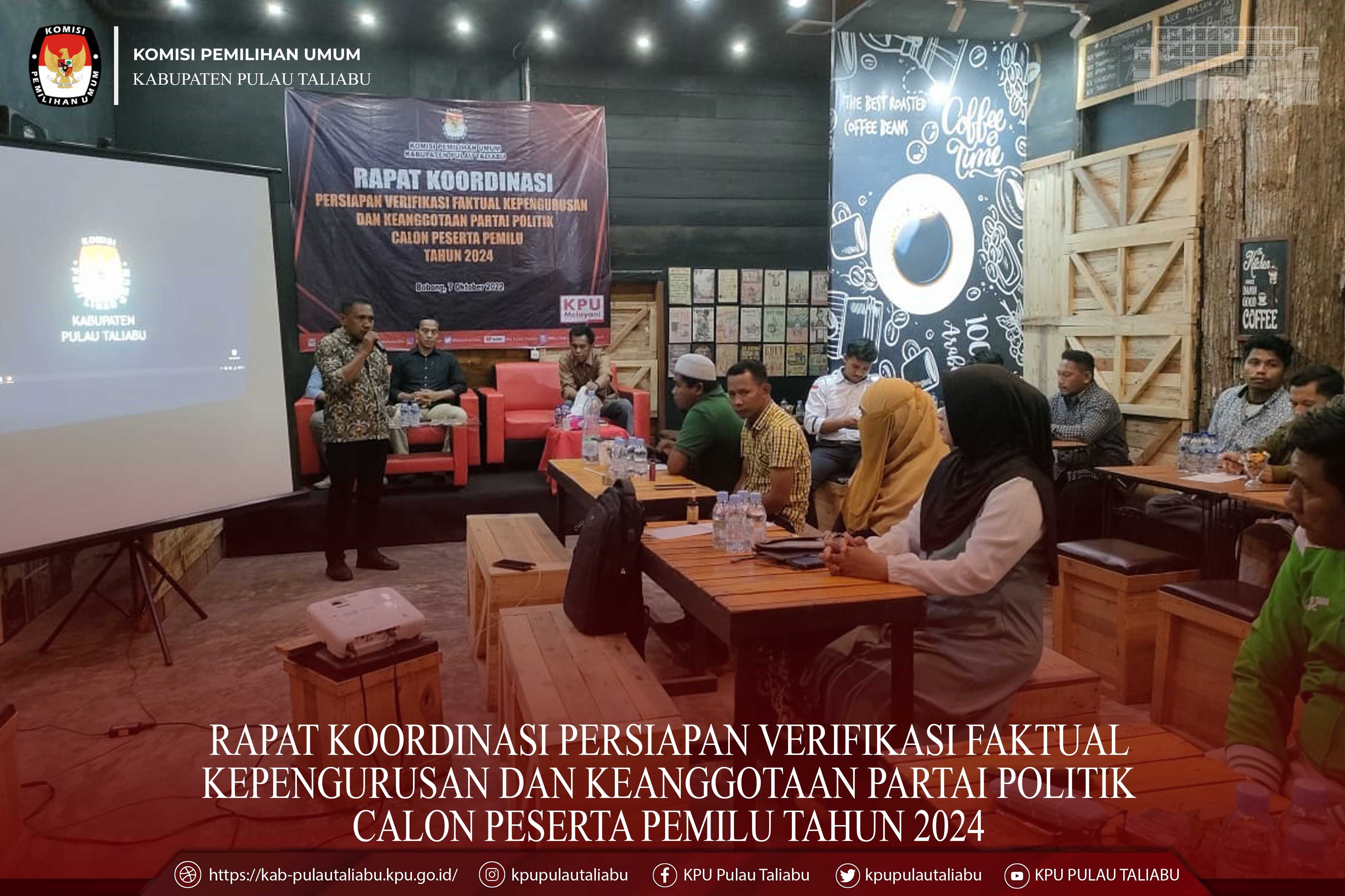 Rapat Koordinasi persiapan Verifikasi Faktual kepengurusan dan keanggotaan Partai Politik Calon Peserta Pemilu Tahun 2024 Jumat, 07 Oktober 2022 00:00 428 Rakor Persiapan Verfak Baca Selengkapnya